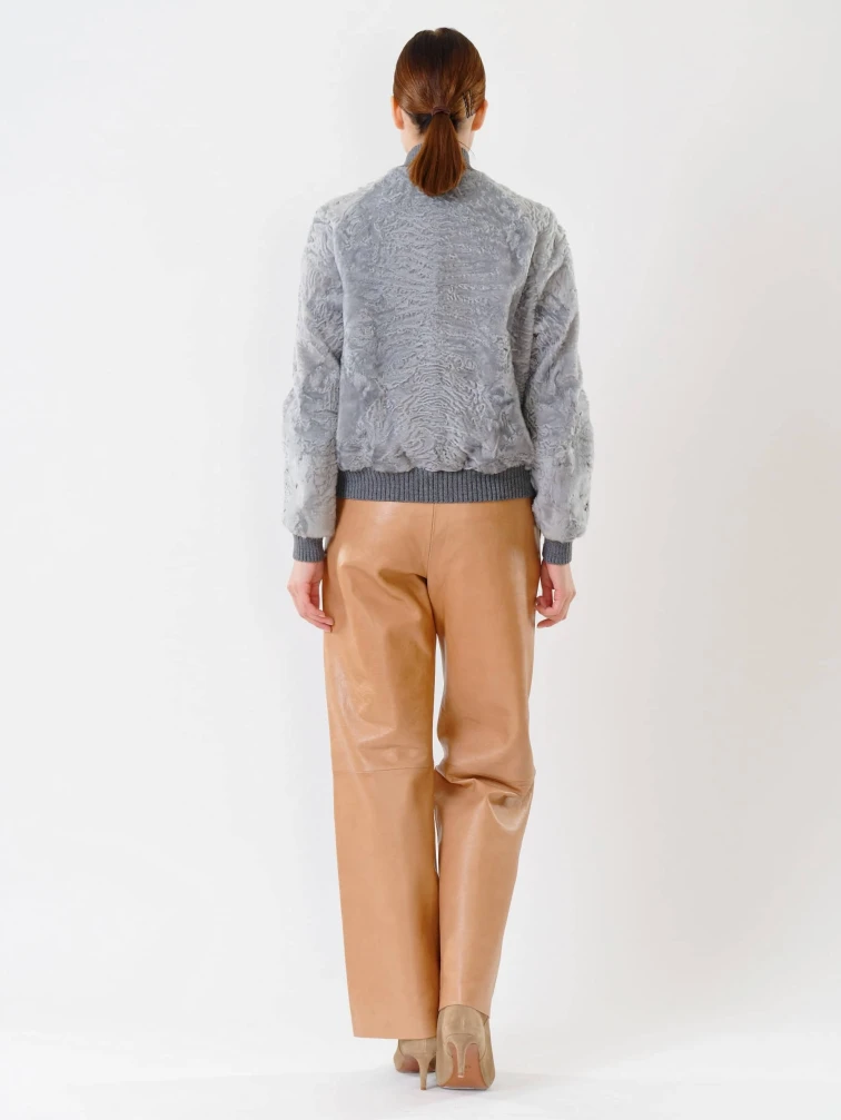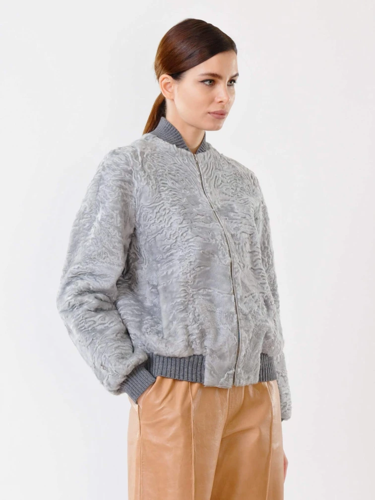 Бомбер из каракуля женский 17105, серый, размер 40, артикул 22590
