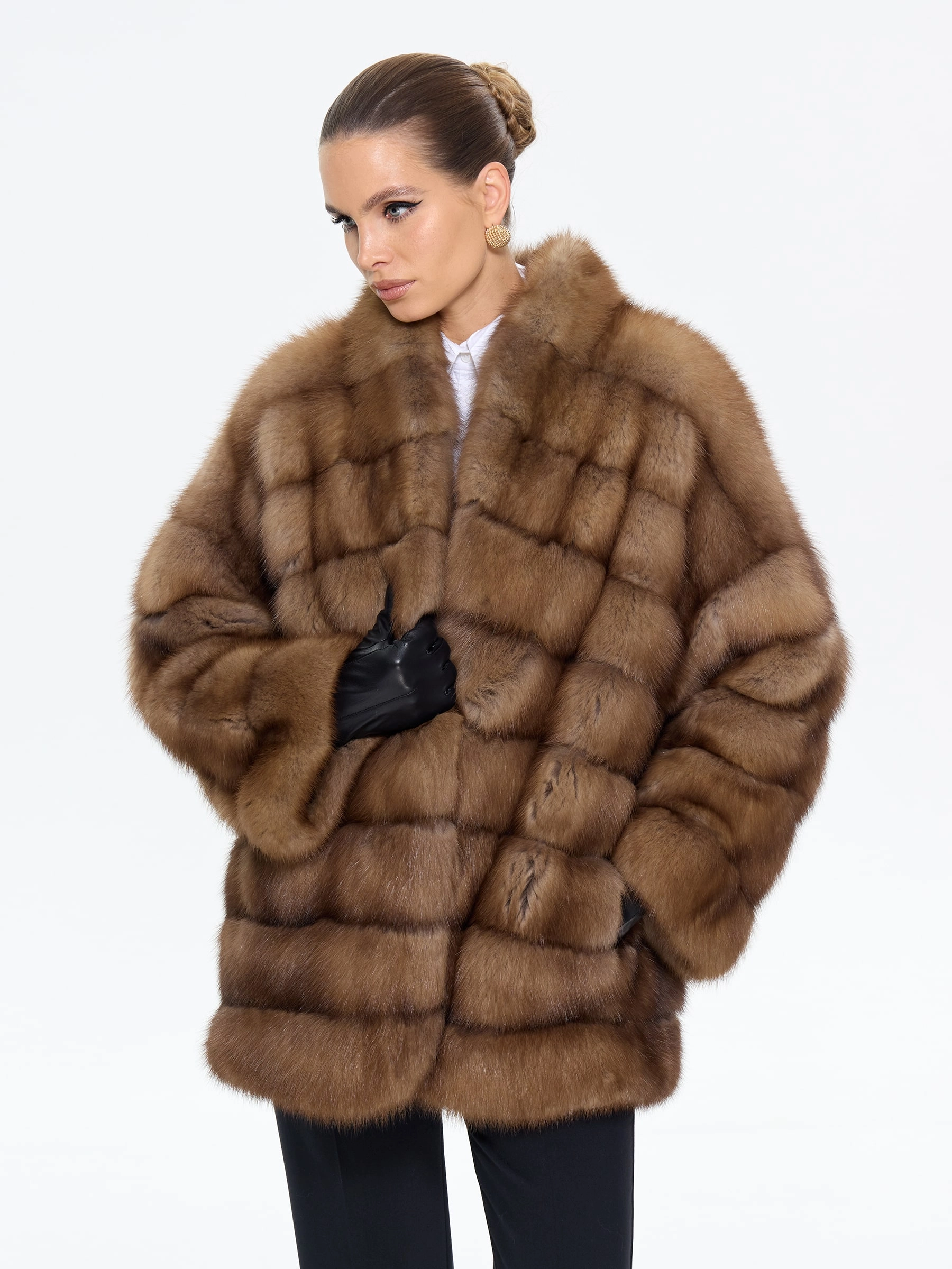 Элегантная шуба из меха куницы премиум-класса длиной 70 см с эффектным V-образным воротником и спущенным рукавом подчеркнет ваш изысканный вкус. Прямой силуэт в светло-коричневом оттенке и скрытые клипсы создают лаконичную элегантность. Стилисты рекомендуют носить эту модель с водолазкой и кожаными брюками для повседневного образа или с платьем-чехлом и сапогами-ботфортами для безупречного вечернего выхода, даря ощущение роскоши и комфорта.