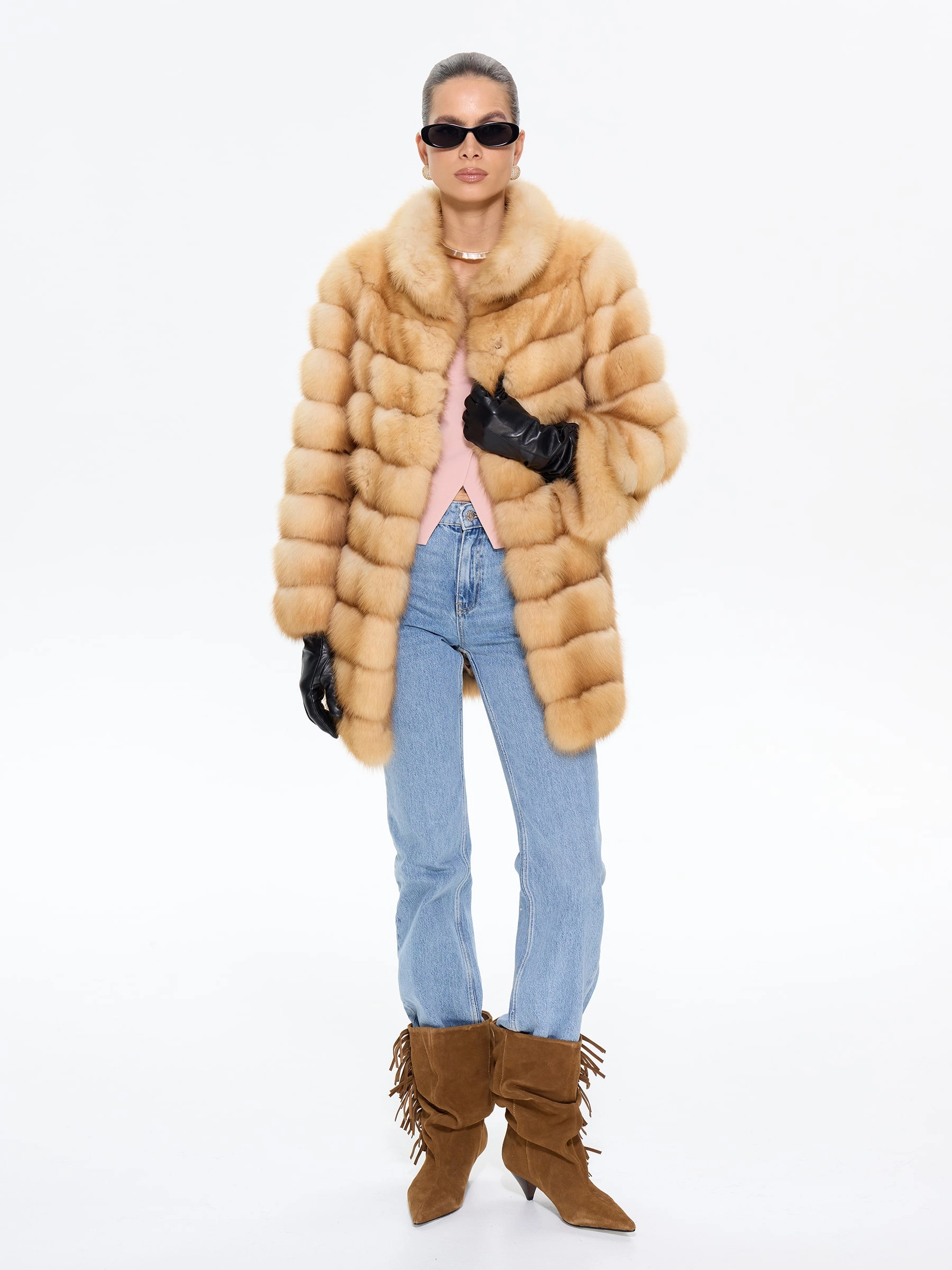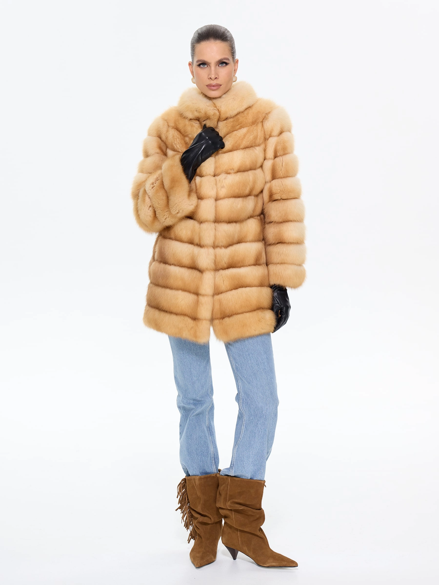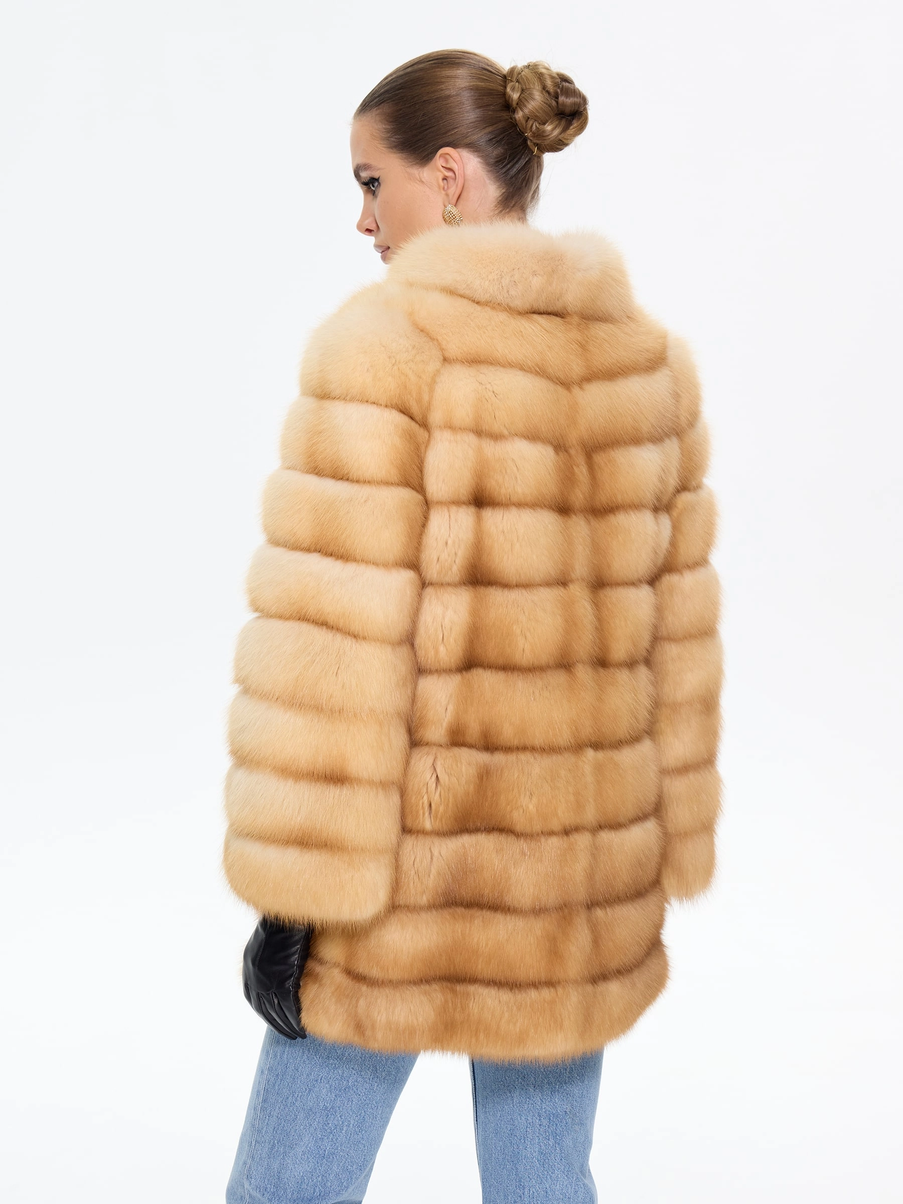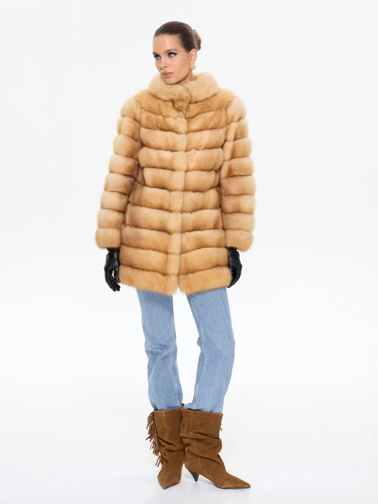 Элегантная шуба из меха куницы премиум-класса прямого силуэта, длиной 75 см, с изысканным воротником-стойкой и втачными рукавами на удобных клипсах. Эта модель станет жемчужиной вашего гардероба, даря ощущение роскоши и утонченного стиля. Стилисты рекомендуют носить эту шубу из меха куницы с воротником-стойкой в паре с кожаными леггинсами и сапогами-ботфортами для безупречного образа, а для вечернего выхода дополнить ее платьем-миди и лакированными лодочками.