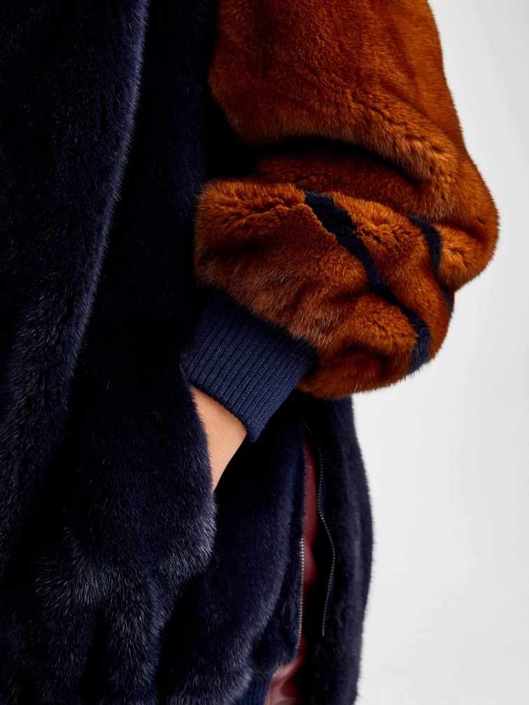 Куртка бомбер из меха норки женский 19003, мультиколор, размер 50, артикул 32830