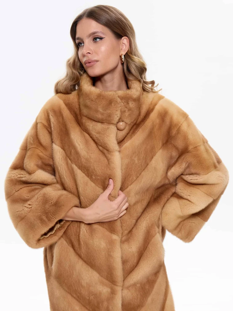 Женская шуба из меха норки BRASCHI MLD 001, рыжая, размер 42, артикул 34390