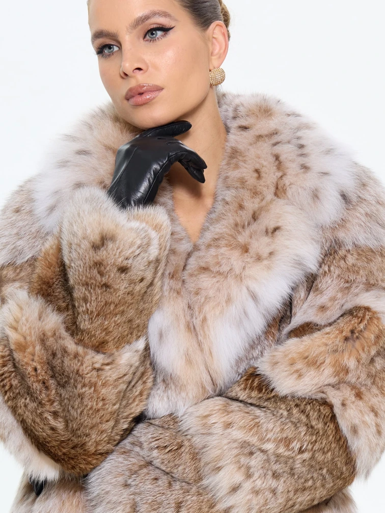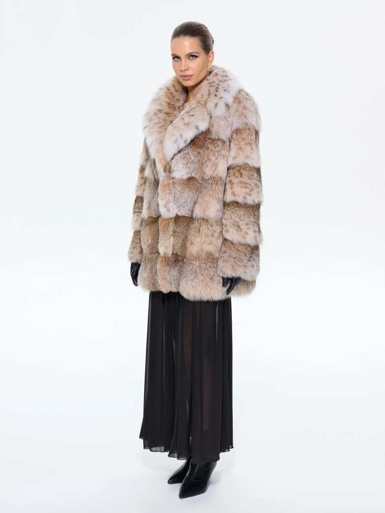 Короткая шуба из меха рыси с элегантным английским воротником — это емкое заявление о вашем безупречном вкусе. Ее прямой силуэт длиной 75 см, скрытые карманы и удобные клипсы создают образ строгой утонченности. Для дерзкого контраста стилисты рекомендуют набросить ее на плечи поверх кожаных леггинсов, объемного свитера и массивных ботинок — такой лук не просто согреет, а статрит вызовом условностям, доказывая, что роскошь может быть абсолютно свободной.