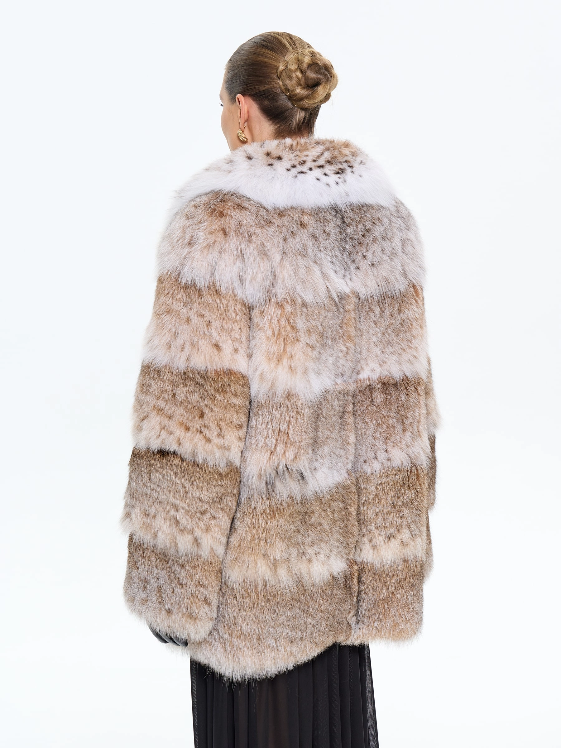 Товар женская шуба из меха рыси л850, натуральный, размер 46, артикул 65340 выполнен из мех рыси с застежкой клипсы. Рассчитан на сезон: зима. Длина изделия 75 см, силуэт прямой.
