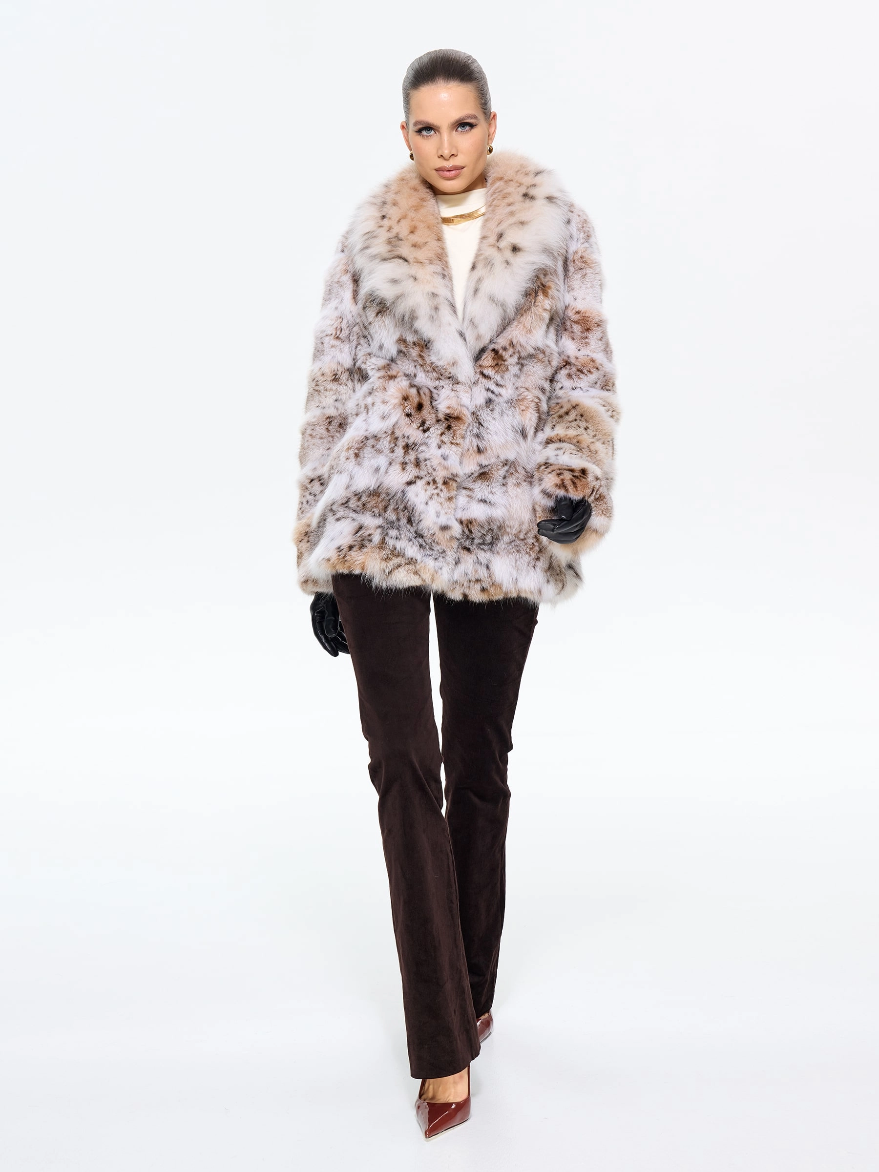 Товар женская шуба из меха рыси м850, натуральный, размер 48, артикул 65330 выполнен из мех рыси с застежкой клипсы. Рассчитан на сезон: зима. Длина изделия 75 см, силуэт прямой.