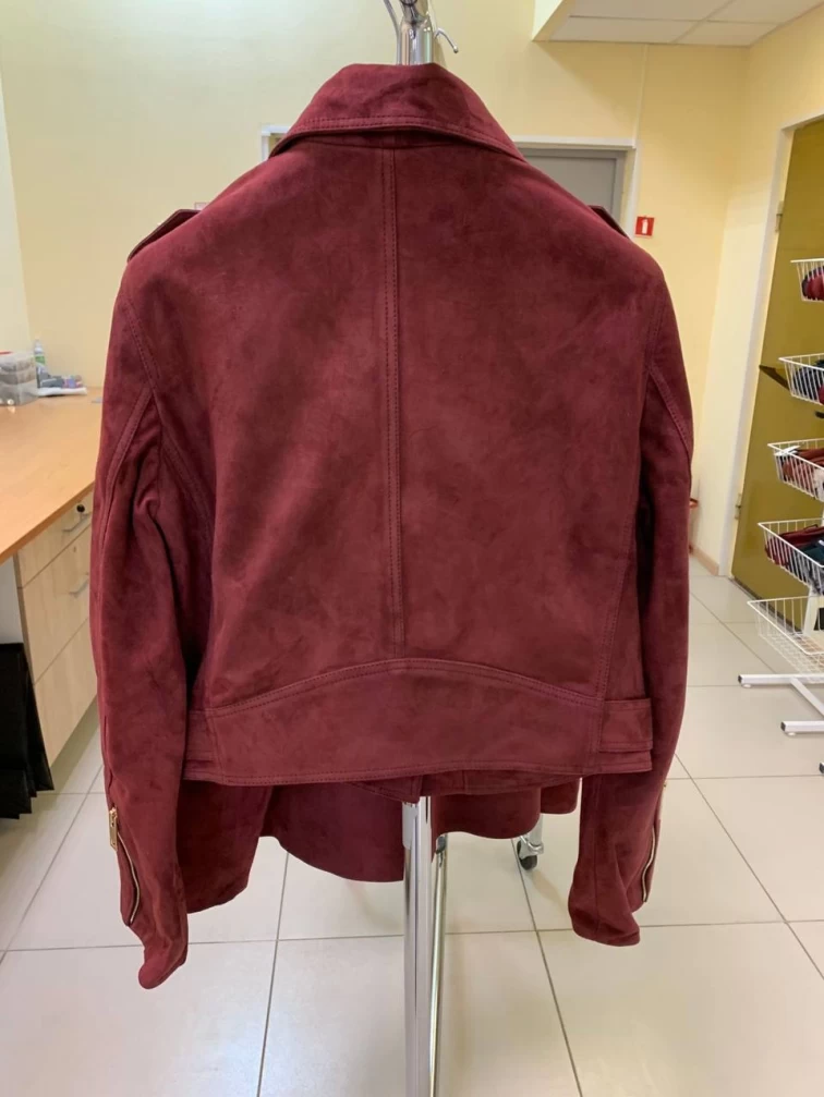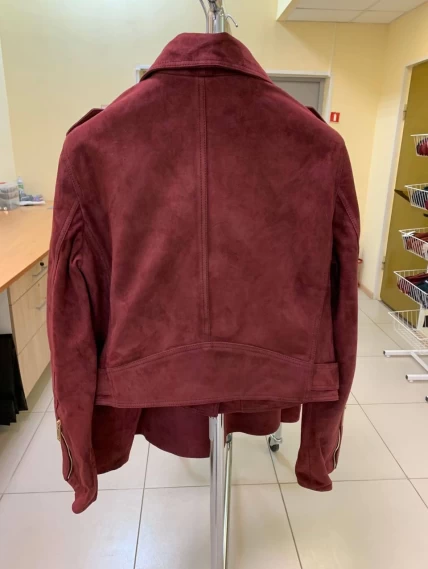 Товар женская замшевая куртка косуха с поясом премиум класса 3080з, бордовая, размер 42, артикул 24740 выполнен из натуральной кожи с застежкой молния. Рассчитан на сезон: весна-лето. Длина изделия 46 см, силуэт прямой.