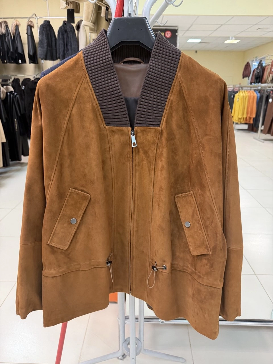 Товар женская замшевая куртка оверсайз премиум класса 3115з, виски, размер 48, артикул 92440.
