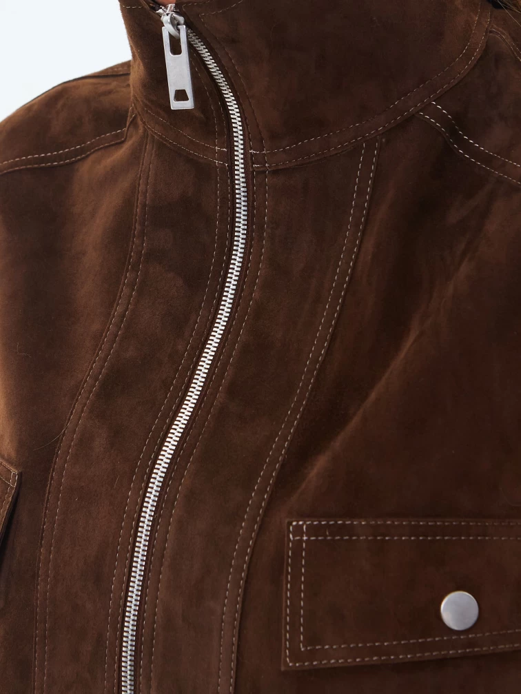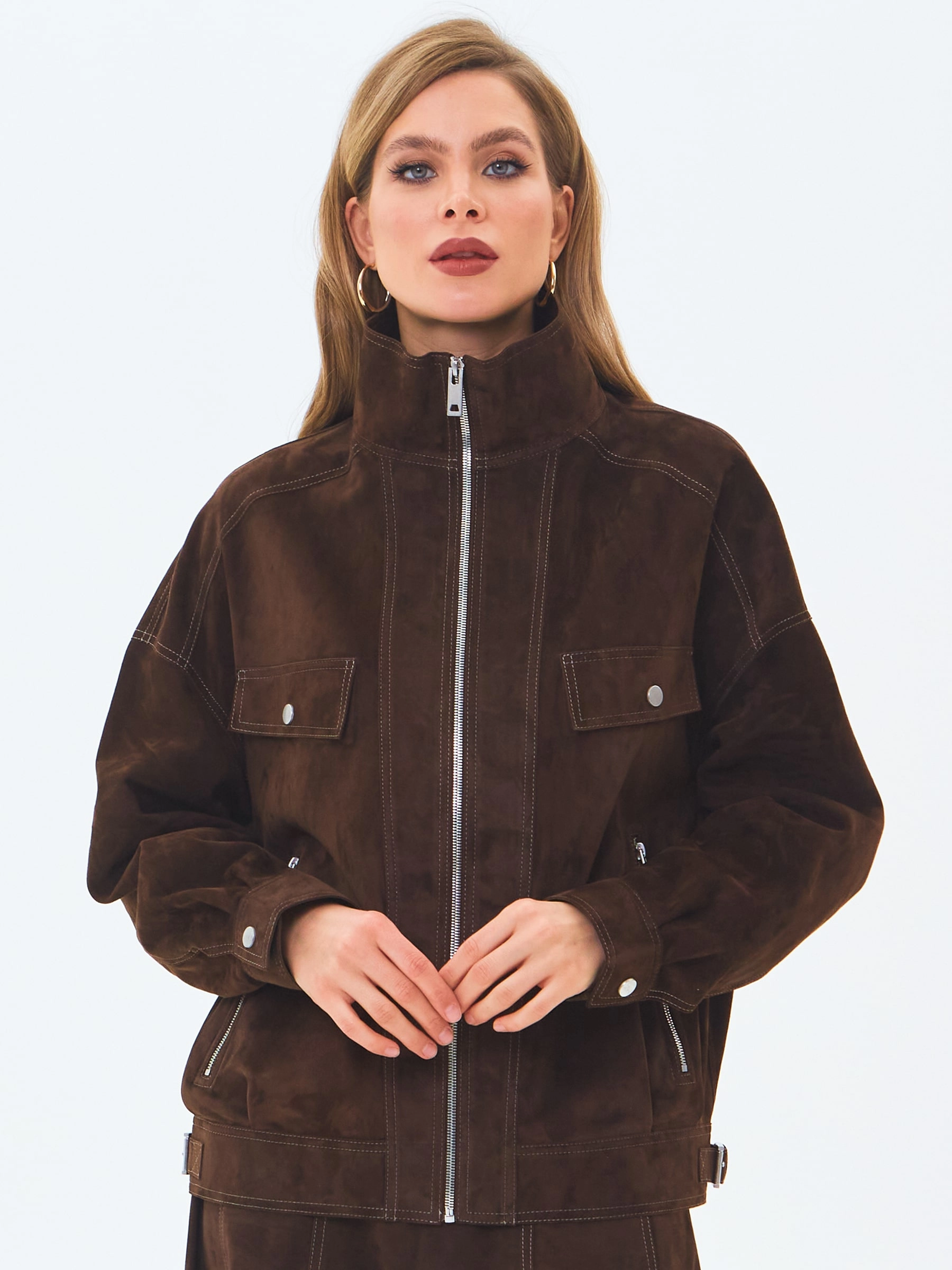 Товар женская замшевая куртка премиум класса 3087з, коричневая, размер 46, артикул 24690 выполнен из натуральной замши с застежкой молния. Рассчитан на сезон: весна-лето. Длина изделия 62 см, силуэт свободный.