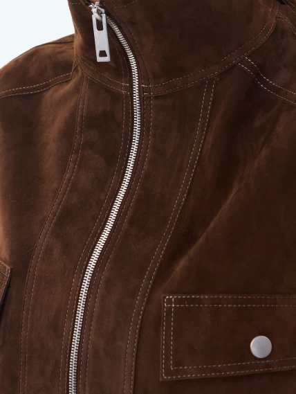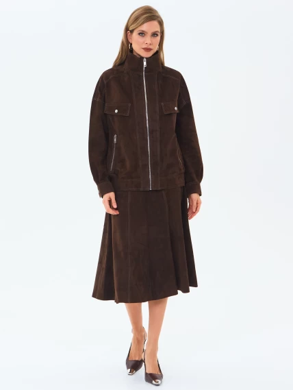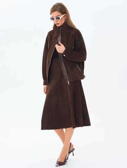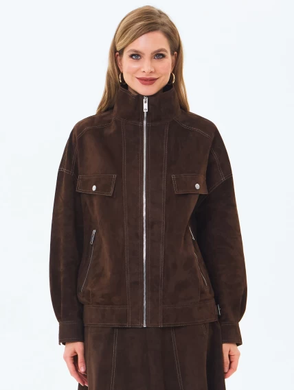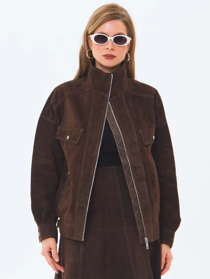 Женская замшевая куртка премиум класса 3087з, коричневая, размер 46, артикул 24690