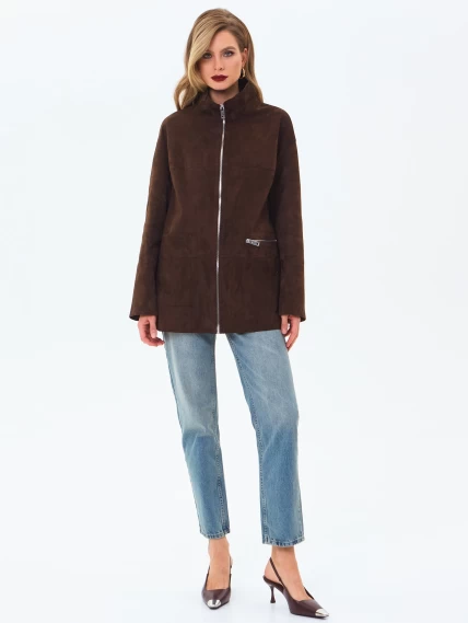 Женская замшевая куртка премиум класса 3089з, коричневая, размер 48, артикул 24430