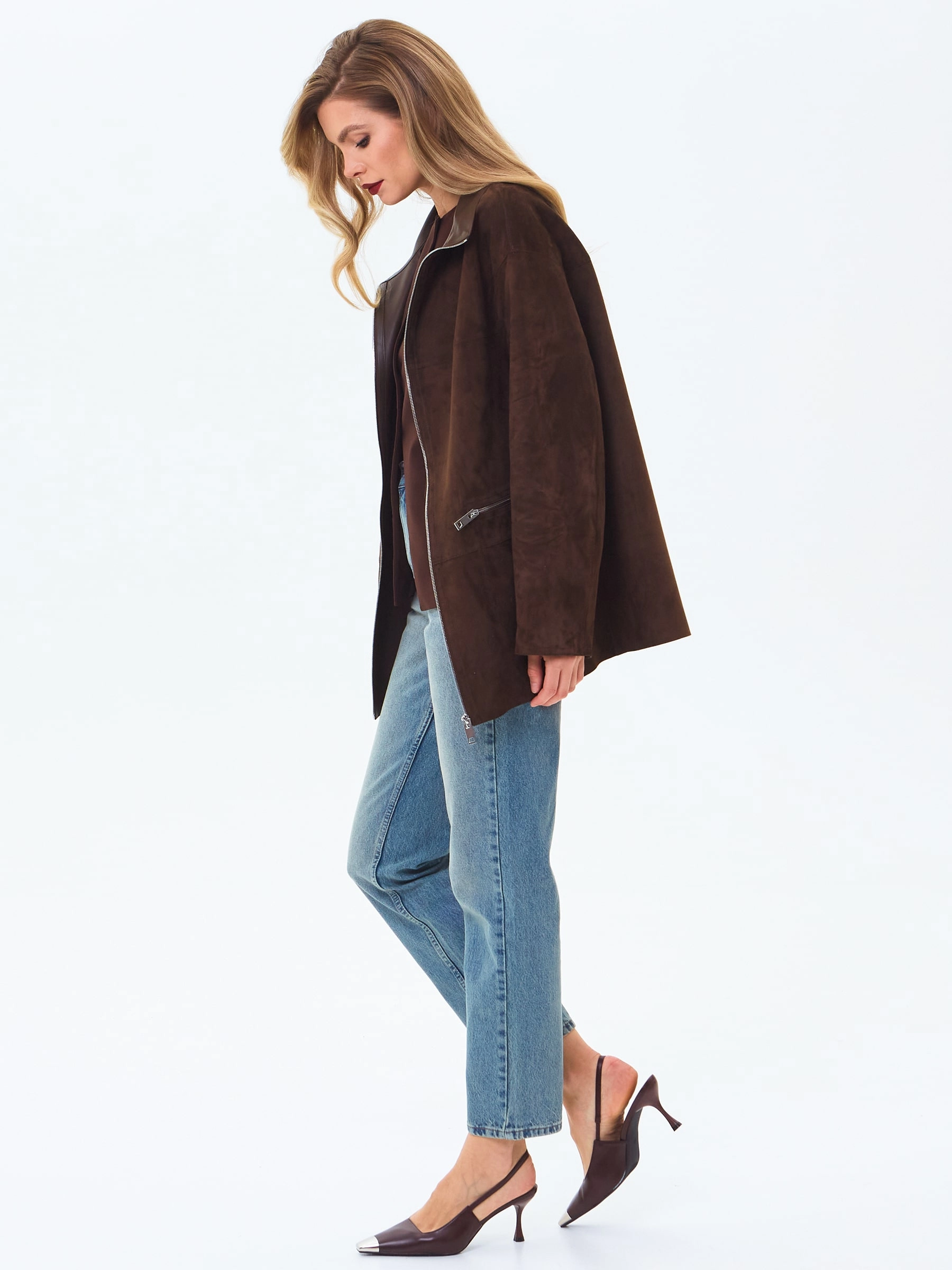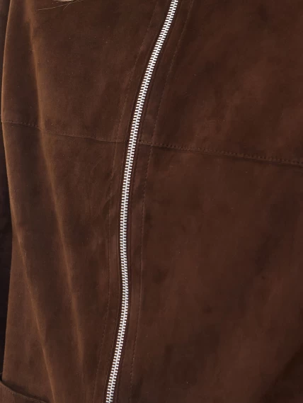 Товар женская замшевая куртка премиум класса 3089з, коричневая, размер 48, артикул 24430 выполнен из натуральной кожи с застежкой молния. Рассчитан на сезон: весна-лето. Длина изделия 73 см, силуэт свободный.