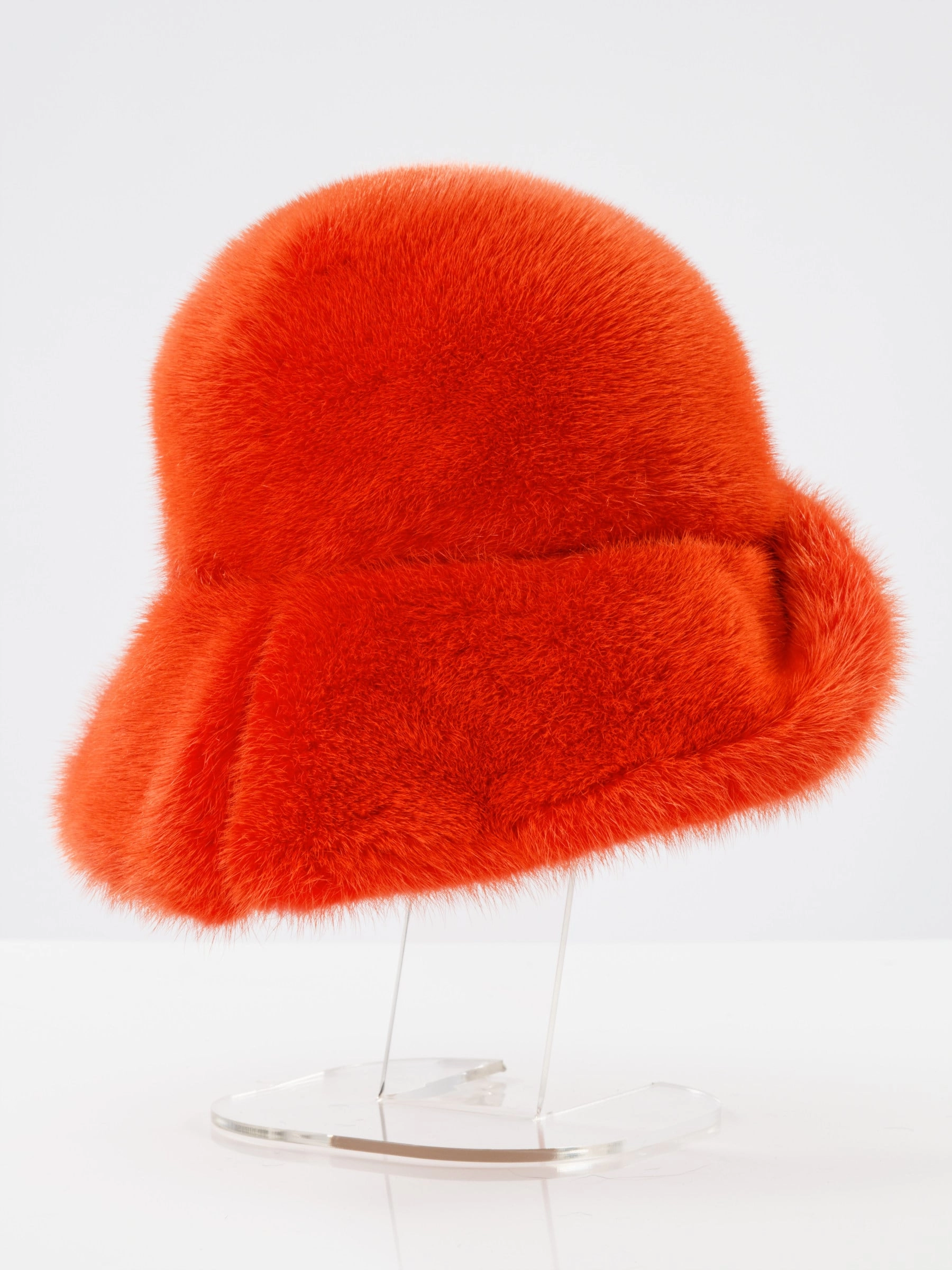 Товар головной убор из меха норки женский шармель, красный, размер 58, артикул 50870 выполнен из норка крашенной. Рассчитан на сезон: зима.